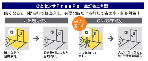 HH-SF0010L、HH-SF0012L、HH-SD0016L、HH-SD0018Lにはひとセンサ搭載で省エネ・防犯にも役立ちます。