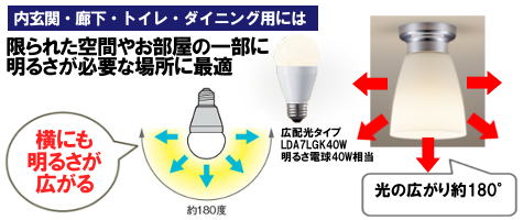 広配光タイプのLED電球がセットされています。